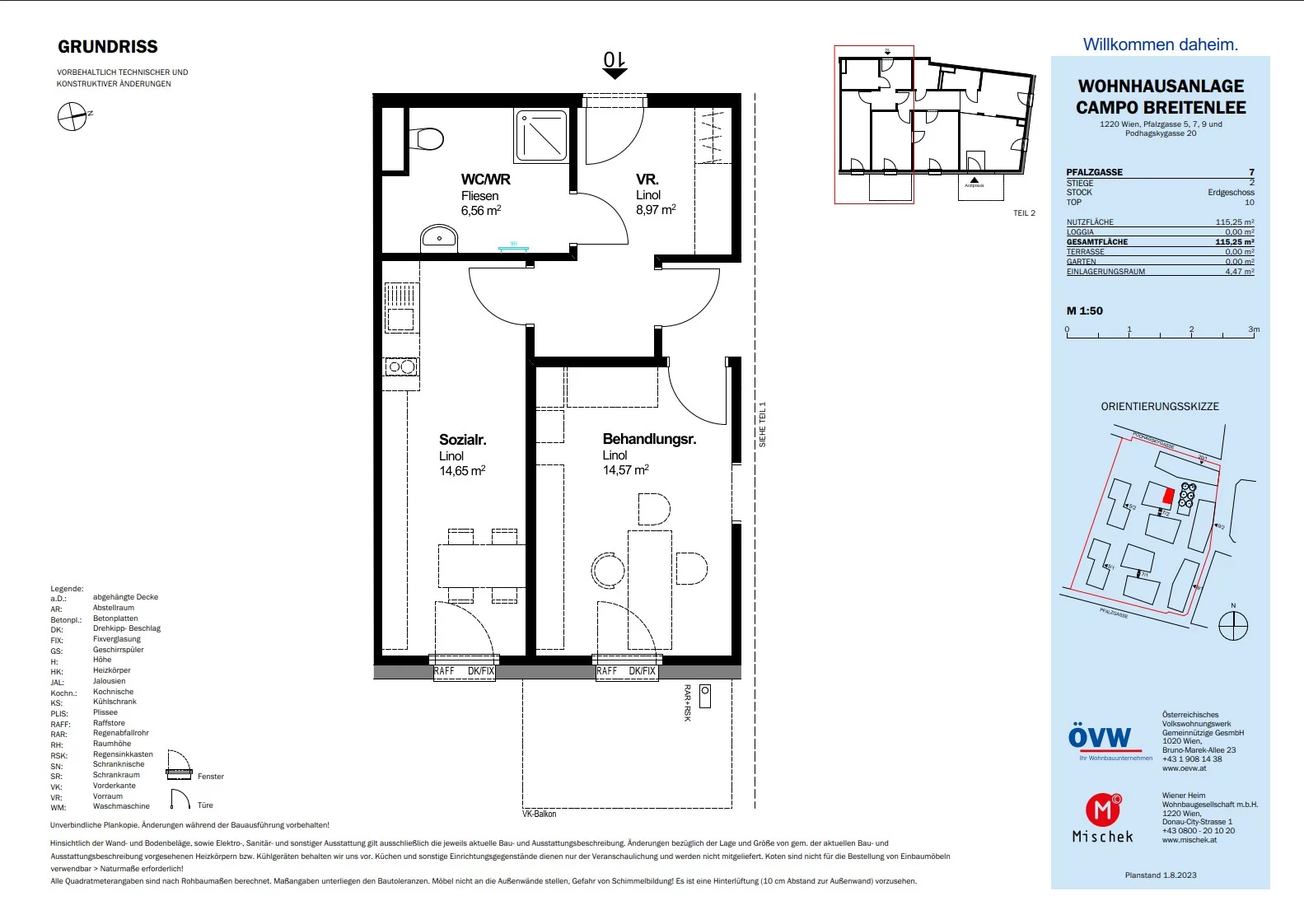 Die Praxis liegt in der Pfalzgasse 7, Stiege 2, Top 10 im Campo Breitenlee im 22. Bezirk Wiens, einem gut erreichbaren und lebendigen Viertel. Durch die Nähe zu öffentlichen Verkehrsmitteln, Apotheken und Geschäften ist die Praxis sowohl für Patienten als auch für Mitarbeiter gut angebunden.