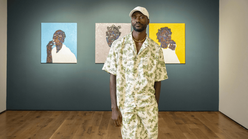 Amoako Boafo, eine bedeutende Stimme der neuen Generation von Schwarzen KünstlerInnen, zeigt in seinen Gemälden ein zeitgenössisches Bild von Schwarzer Selbstermächtigung und -wahrnehmung, indem er Freundinnen, Bekannte und öffentliche Persönlichkeiten porträtiert.