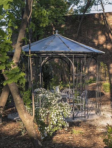 Ohne den unvergleichlichen Stil des Schlössls zu verfälschen, hat sich in der Tat einiges getan. Der Garten hinter dem Restaurant im 11. Bezirk wurde grunderneuert und ein Pavillon dort aufgestellt. Um den Pavillon herum reihen sich einige Strandkörbe, die Pärchen zu romantischen Verweilen einladen - hier kann sich außerdem das Ja-Wort gegeben werden.