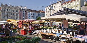 Der Karmelitermarkt als Herzstück der Leopoldstadt verbindet klassische Marktkultur mit einem gelungenen Mix aus kulturellen Veranstaltungen.