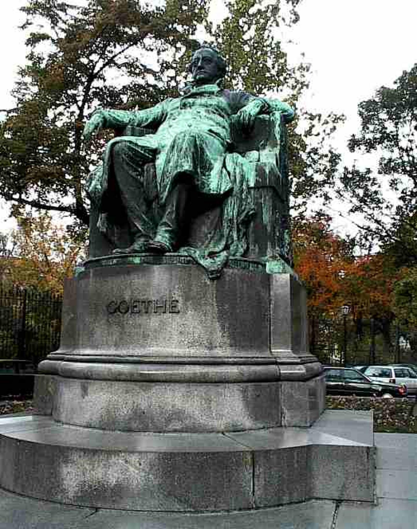 Das Denkmal zu Ehren von Johann Wolfgang von Goethe wurde 1895 von Eduard Hellmer für einen Wettbewerb im Modell erstellt und 1900 auf einem dreistufigem Podest errichtet.