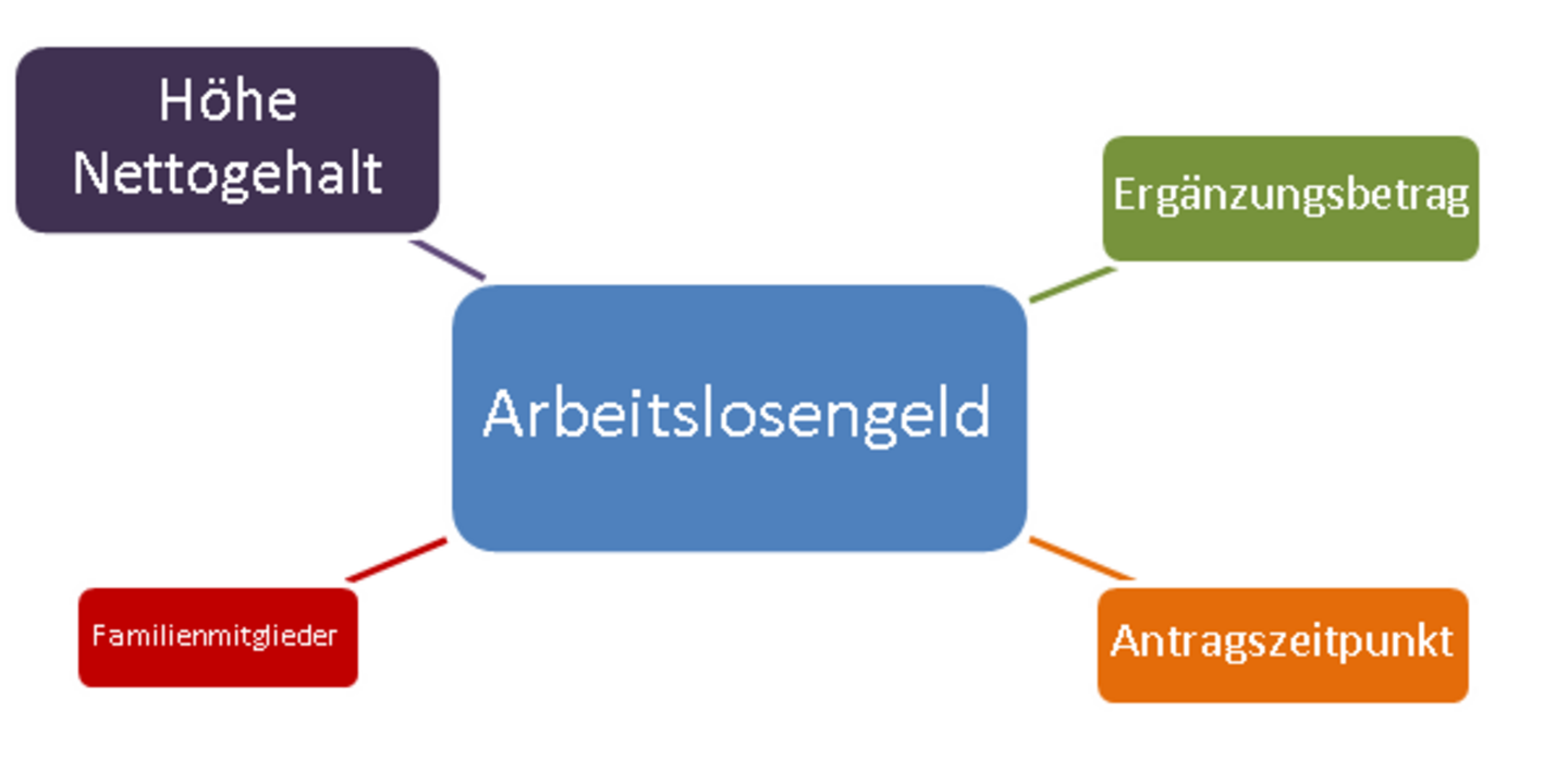 Der Grundbetrag auf Arbeitslosengeld beträgt ca. 55 % - 60 % vom Nettoeinkommen plus Zuschläge für Familienmitglieder.